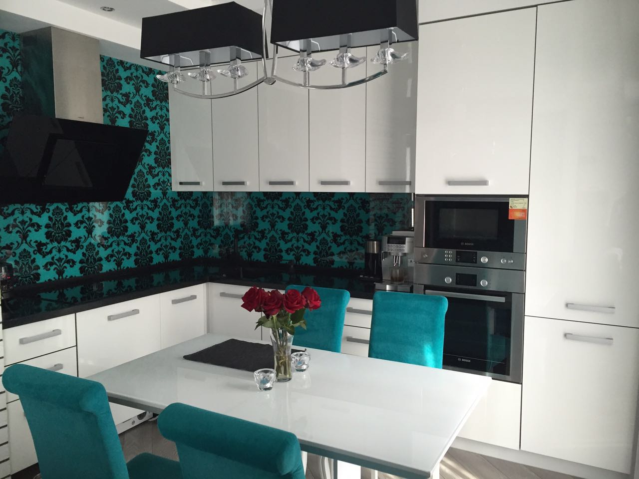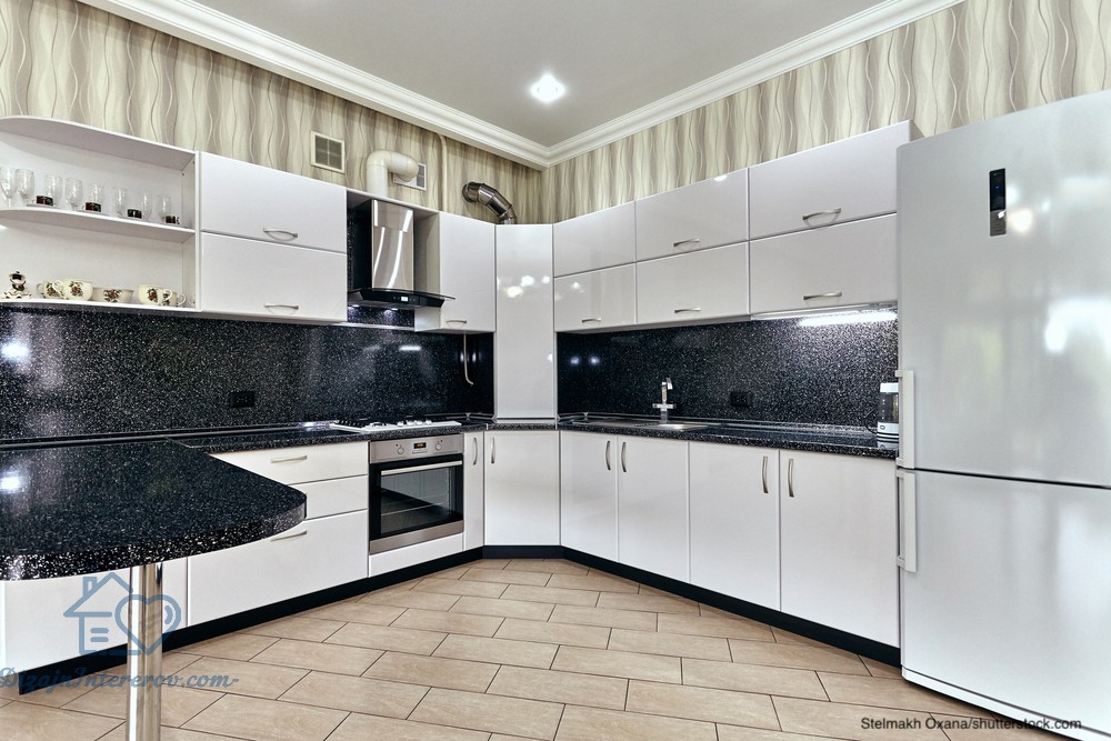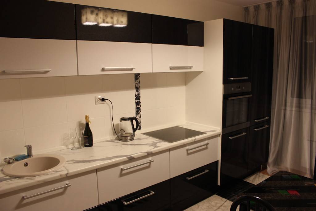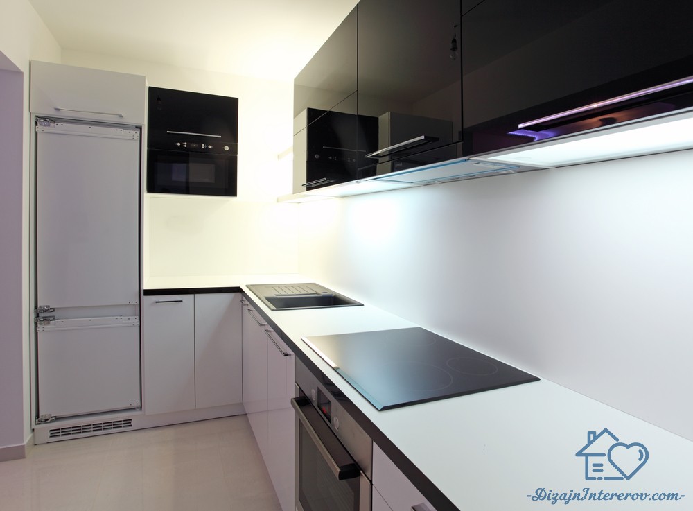 Черно-белая глянцевая кухня подходит не каждому помещению. Маленькая кухня в таком исполнении будет выглядеть нагроможденной и темной, несмотря на яркость глянцевый блеск.