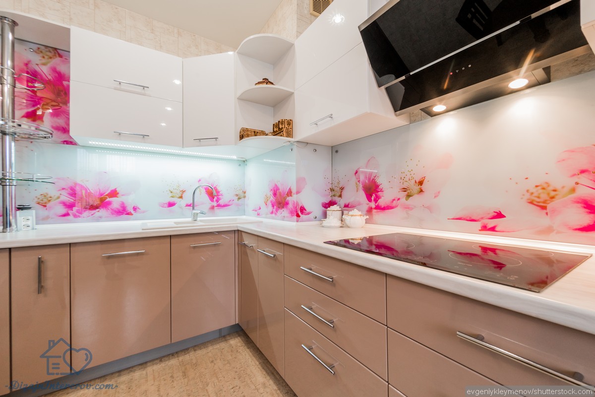 Белый цвет – это лучшее решение для кухонь с маленькой площадью. Светлый глянец визуально расширит пространство и создаст ощущение простора. Цвет хорошо сочетается со стеклом, хромированными элементами и натуральным деревом.