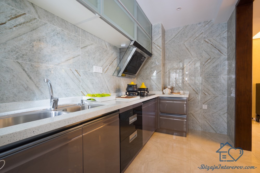 С практической точки зрения в этом оттенке мы тоже можем найти плюсы. На нем не так видны различные загрязнения, как на светлых цветах, что повышает функциональность кухонного пространства.