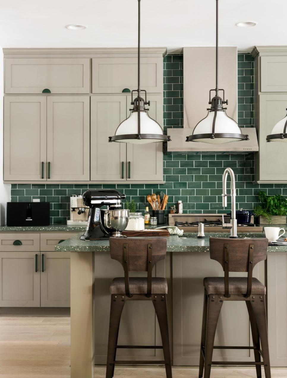 Цветовая гамма кухонь в этом году смещается из синей палитры в зеленую ― на пике моды глубокие изумрудные, лесные и мшистые тона, а также элегантные мятные и яблочные.