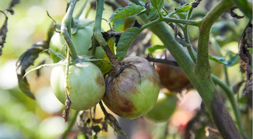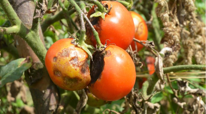 Неблагоприятные условия ослабляют томаты, это способствует проникновению патогенов в растение и их распространению на другие органы и на соседние растения.