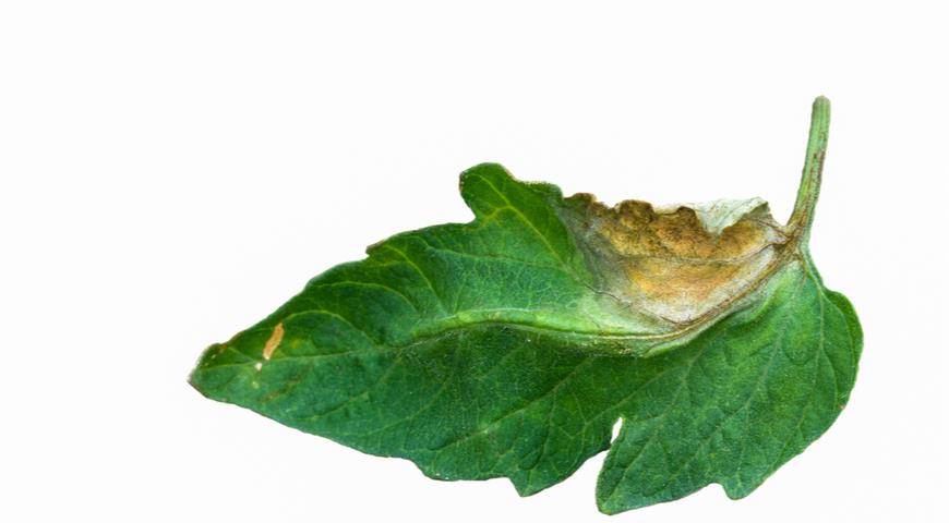 Первые симптомы болезни появляются там, где дольше всего сохраняется влага, – на нижних листьях по краям листовой пластинки. На пораженных плодах томатов образуются бурые вмятины, и плоды вскоре загнивают, засохшие листья скручиваются в трубочку.
