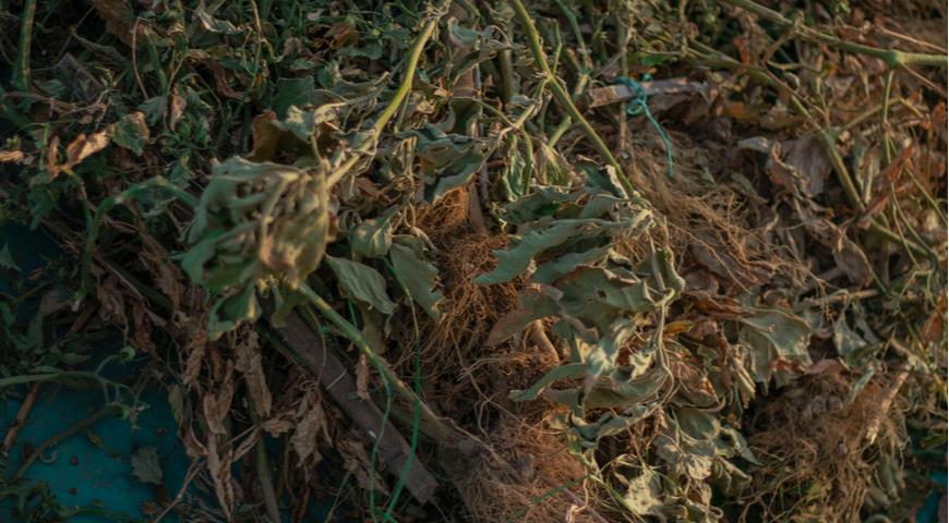 6. Если фитофтороз все же «прогулялся» по огороду — осенняя уборка грядок должна быть особенно тщательной: растительные остатки необходимо не просто собрать, а закопать в землю или сжечь, садовый инвентарь продезинфицировать.