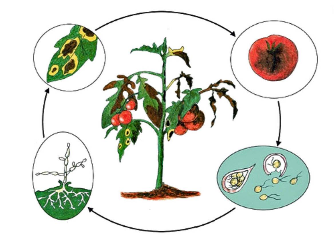 Фитофтора на помидорах интенсивно развивается во второй половине лета. Развитию способствует высокая влажность воздуха, резкие переходы от низких ночных к высоким дневным температурам, которые вызывают растрескивание стеблей и плодов, а также капельная влага на растениях.