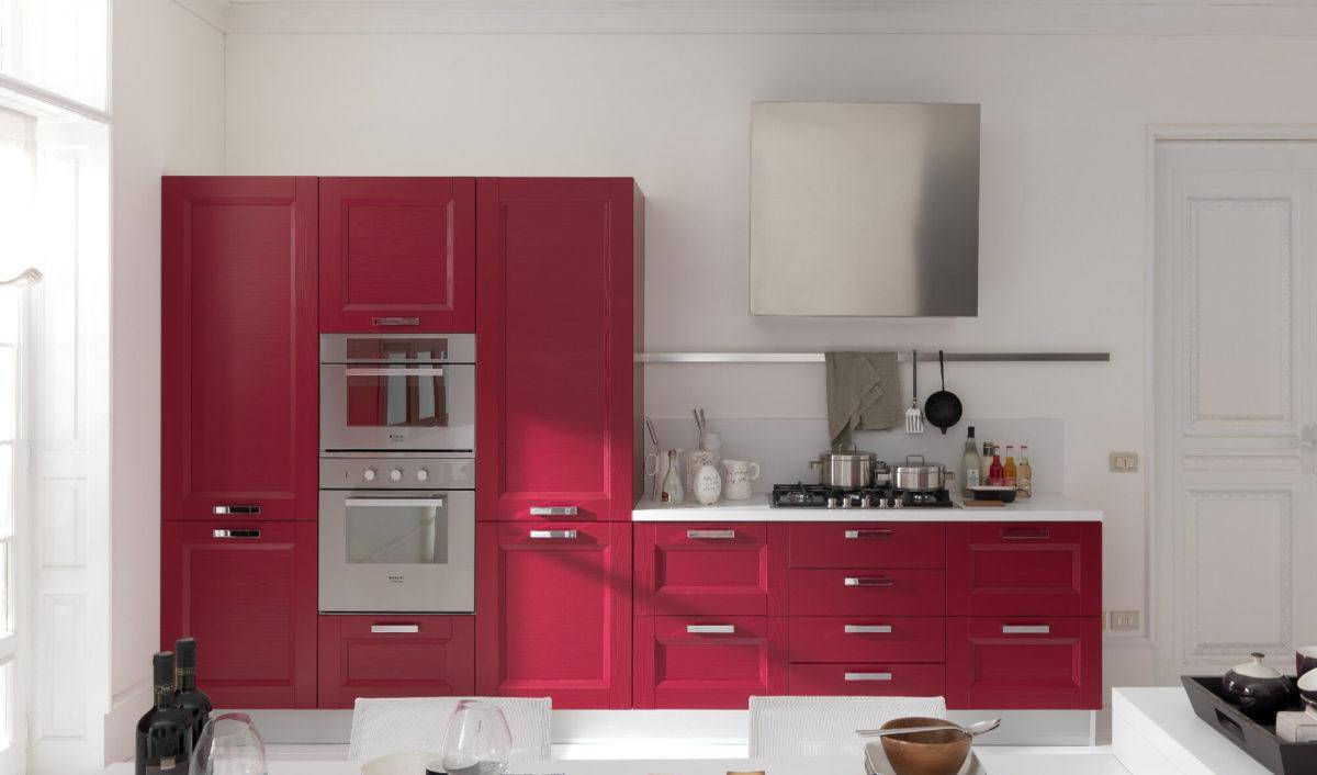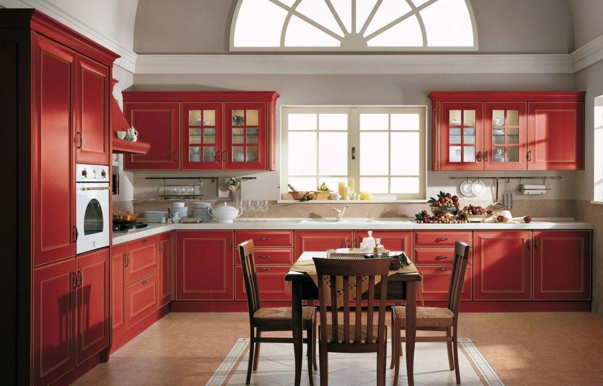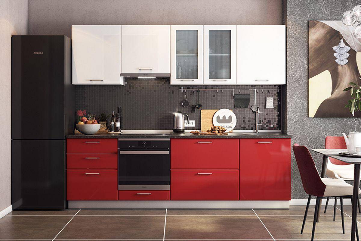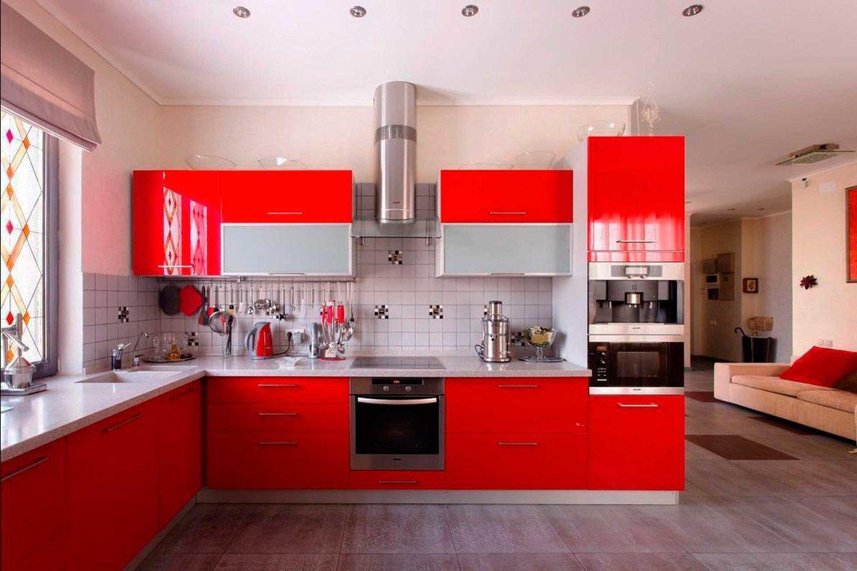 Часто красные кухни имеют вставки другого цвета (столешница, часть фасадов и т. д.). Грамотный выбор и комбинирование оттенков помогут нивелировать воздействие цвета на нервную систему. Некоторые модели гарнитуров снабжаются вставками иных материалов, к примеру, стёкла.