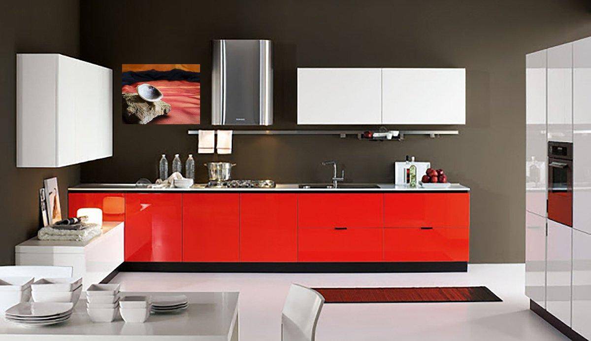 А в итоге, на фоне этого ярчайшего красного пятна вообще не видно ни кухонной мебели, ни стильной вытяжки, ни красивой плитки на фартуке.