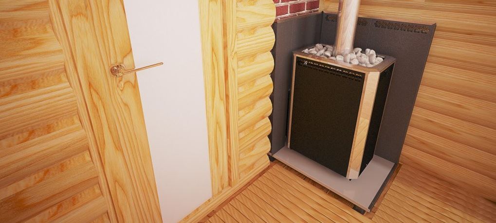 Безопасное расстояние отопительных агрегатов от стен можно обеспечить только в больших банях. Во всех иных случаях без изоляции поверхностей не обойтись. Самым простым и распространённым способом защиты деревянных поверхностей от обугливания и воспламенения является установка защитных экранов из стали или чугуна, оснащённых изоляционным слоем.