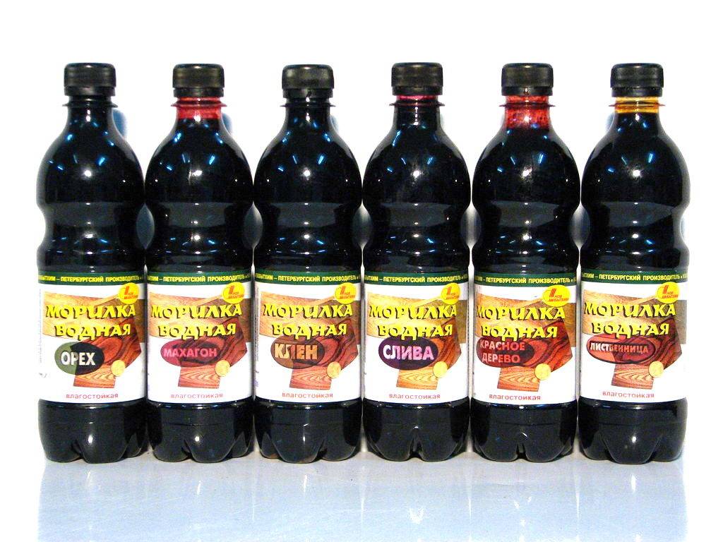 Морилки придают поверхности определенный оттенок, но не защищают ее от воды и других воздействий. Составы могут быть на водной, спиртовой или масляной основе. Они отличаются по свойствам, но выполняют одну и ту же функцию. Выбор зависит от конкретных условий, но самыми популярными являются растворы на водной основе, их выделяет невысокая цена и безопасность;