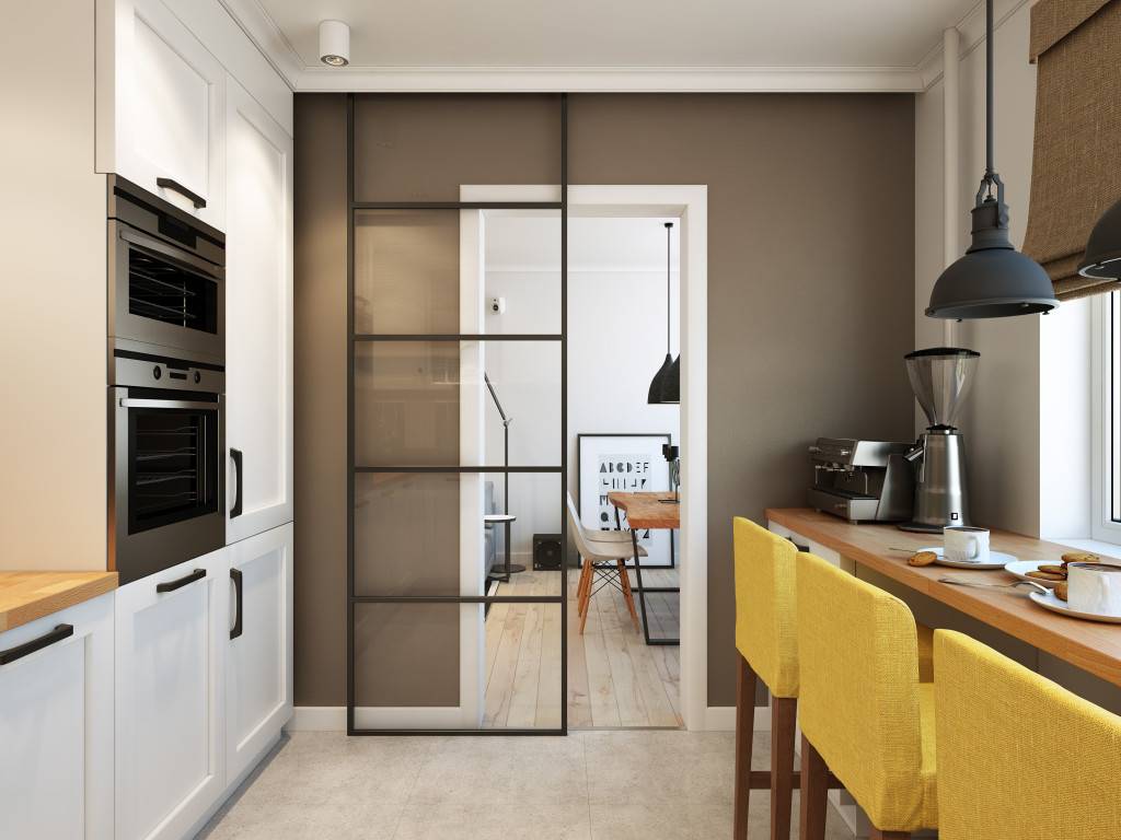 Функциональность интерьера маленькой кухни с барной стойкой