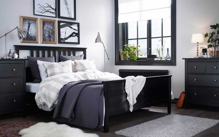 Использование черного цвета на одной поверхности в спальне небольшой площади
