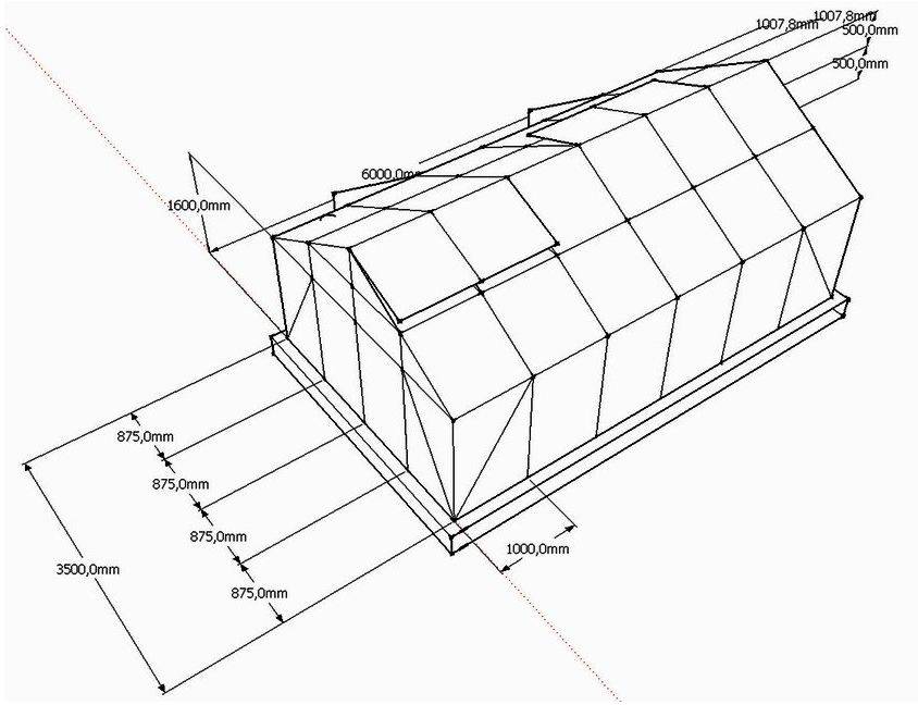 Чертеж теплицы из поликарбоната своими руками, из профильной трубы двускатного типа.