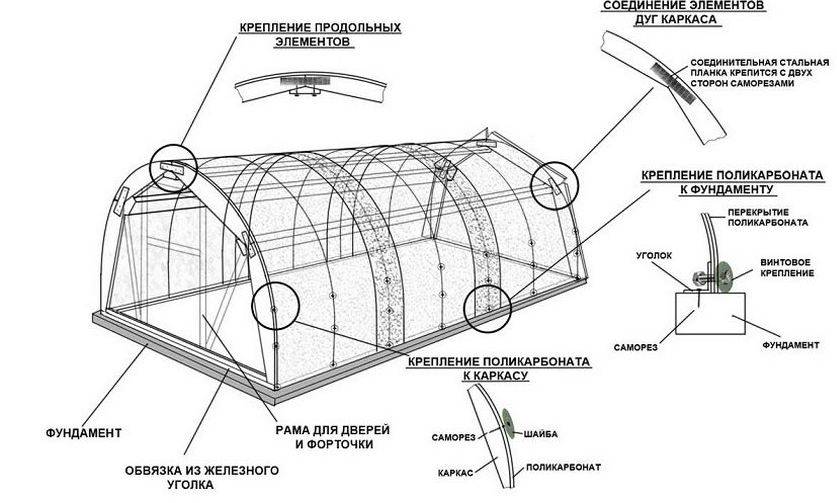 Как создать арочную теплицу из поликарбоната собственноручно, схемы и чертежи, фото.