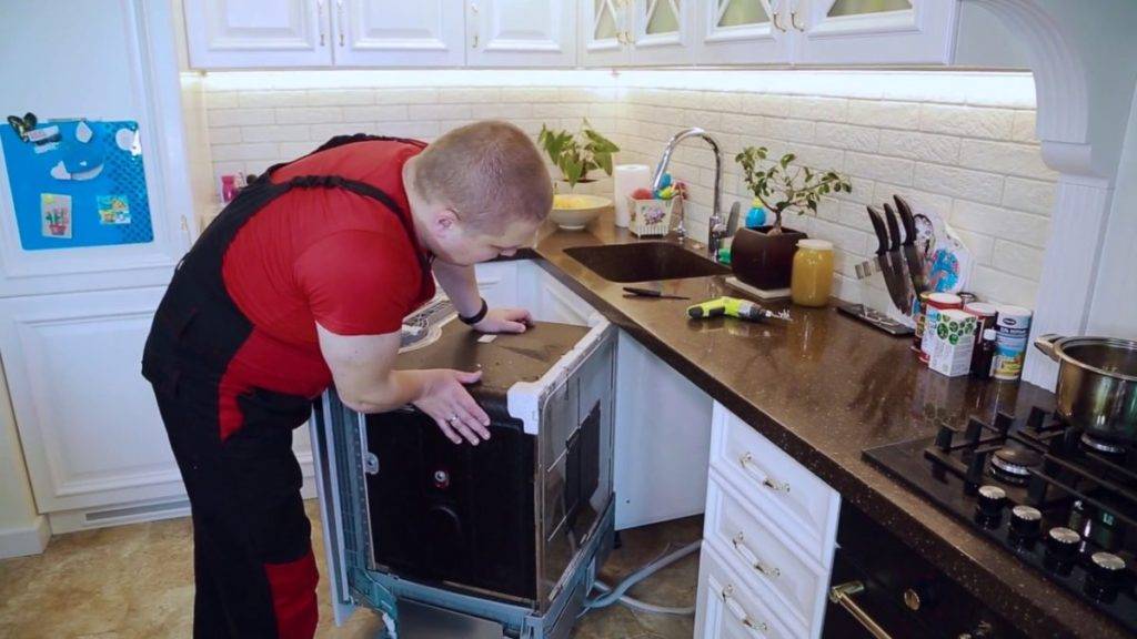 Если у вас встроенная посудомойка, отсоедините крепления, отключите коммуникации и вытащите ее на свободное место.