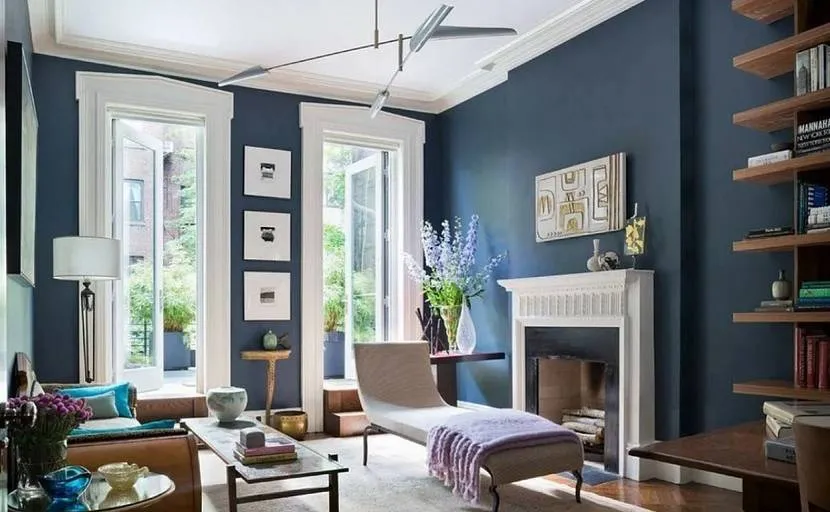 Для гостиной, расположенной с северной стороны подойдет голубой цвет. Оттенки синего способствуют расслаблению, снижают активность. В качестве оформления интерьера можно подобрать картины с изображением водоемов.