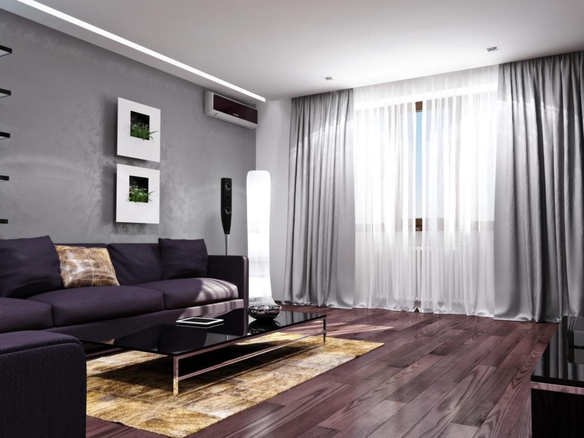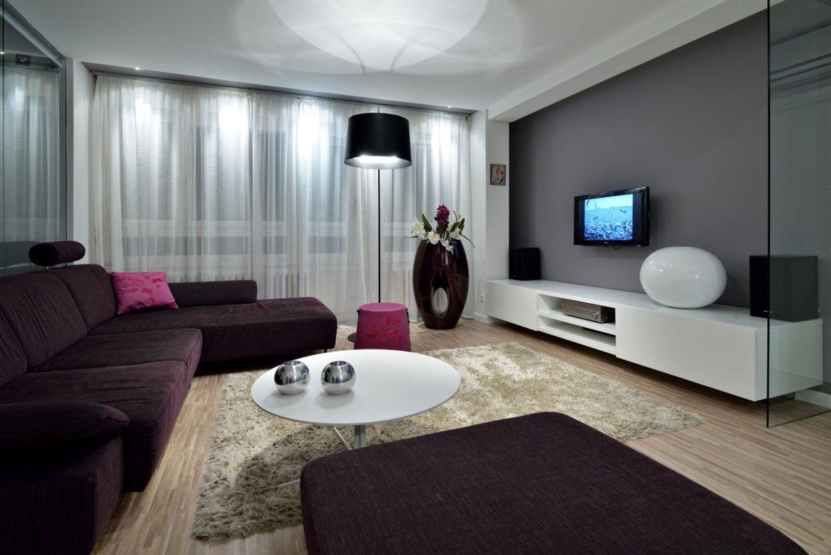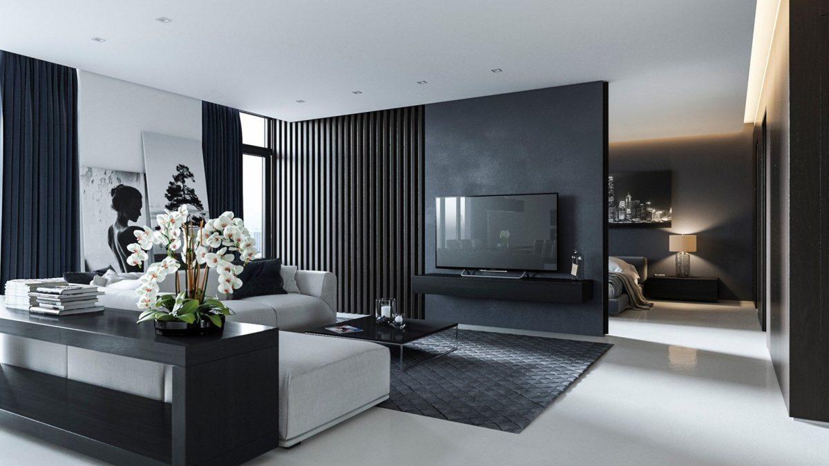 Использование темного цвета для выполнения зонирования в гостиной