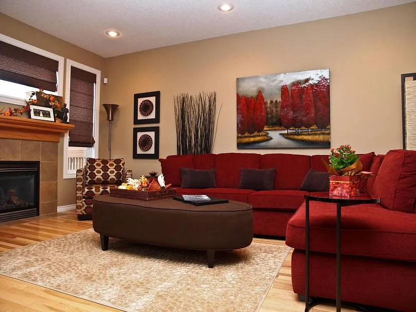 Очевидно, что теплые цвета в интерьере зала формируют вполне однозначную атмосферу – уютную и приятную. Более светлые оттенки получаются достаточно изысканными, а вот насыщенные – домашними и эмоциональными.