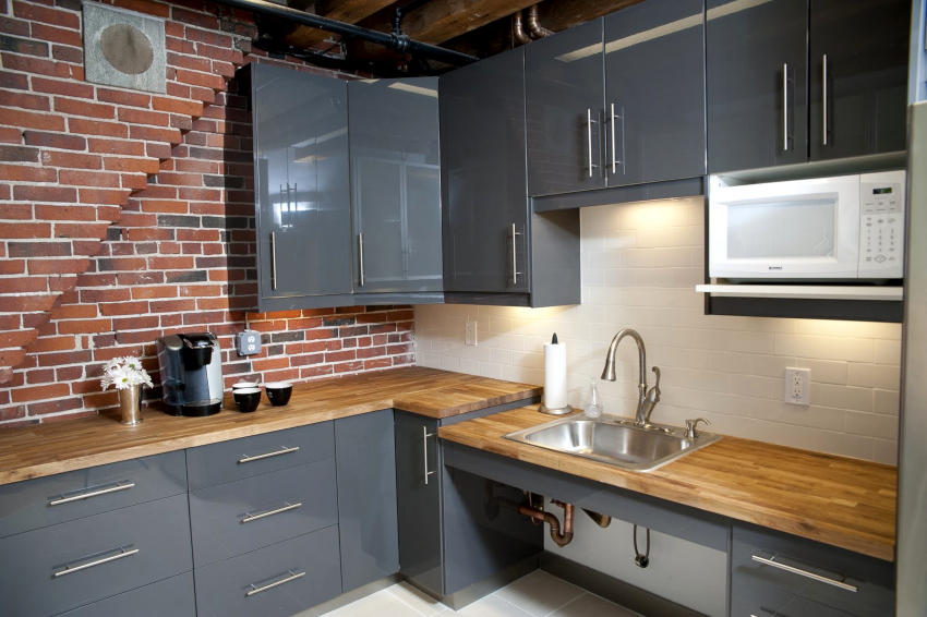 Важно, чтобы она не подавляла цвет гарнитура и не размывала палитру помещения. При этом необходимо принимать в расчет кухонный фартук! Если и он, и столешница будут светлыми, кухня будет казаться размытой