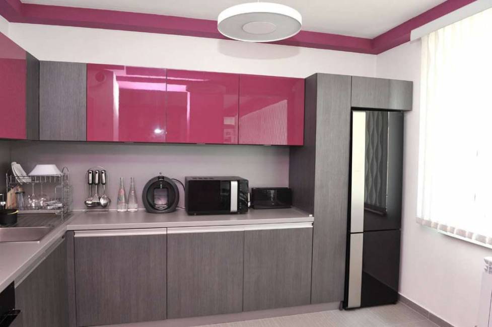 Яркая кухня с оттенками фиолетового может понравиться нестандартно мыслящим людям.