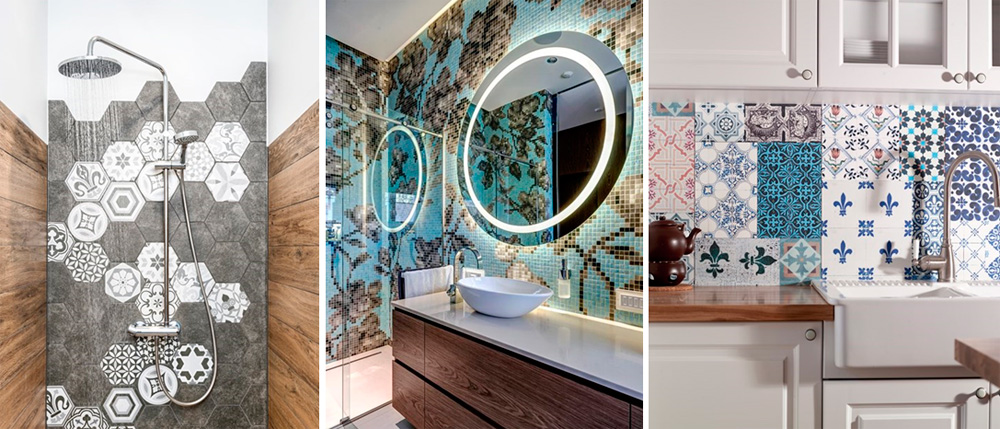 Мозаика на стенах сможет найти свое место в интерьерах старинных и эклектичных.