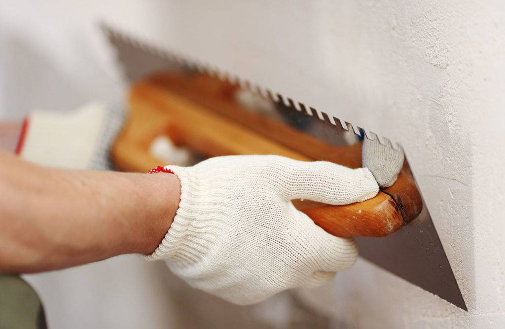 - Выравнивание плоскости. Это важная процедура, так как от нее зависит качество кладки. Если имеются дефекты, то они устраняются шпаклевкой. Даже мелкие трещины должны быть устранены.