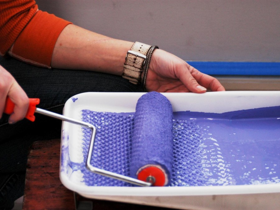 Для покраски стен и потолка потребуются кисть или валик. Кисть используется для труднодоступных мест (углы, участки за радиатором), а валиком удобно и быстро работать на разных поверхностях. Вместе с валиком рекомендуется приобрести ванночку, чтобы контролировать количество краски. Для удаления погрешностей требуется тряпка.