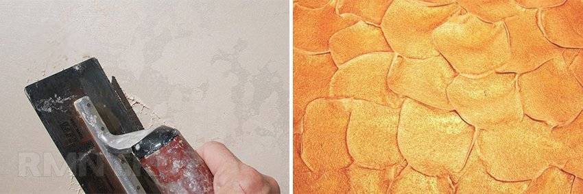 Так называется разновидность венецианской шпатлевки, с помощью которой имитируют разные виды фактур: песчаника, дерева, камня. Сходство достигается созданием глубокого рельефа поверхности с гладкими краями углублений.