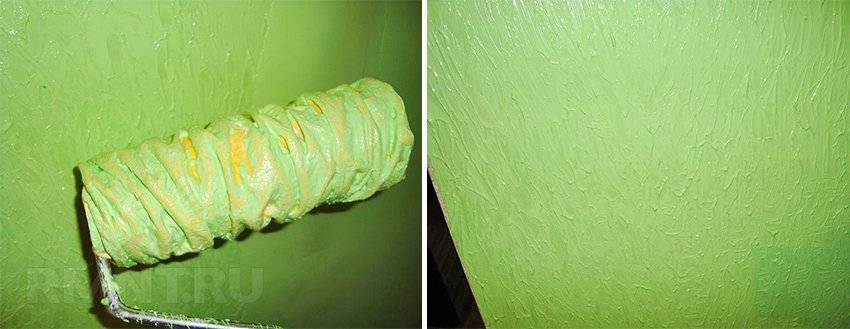 - шпателем укладывается слой раствора в 3 мм, и после схватывания поверхность прокатывается валиком с короткой шубкой;