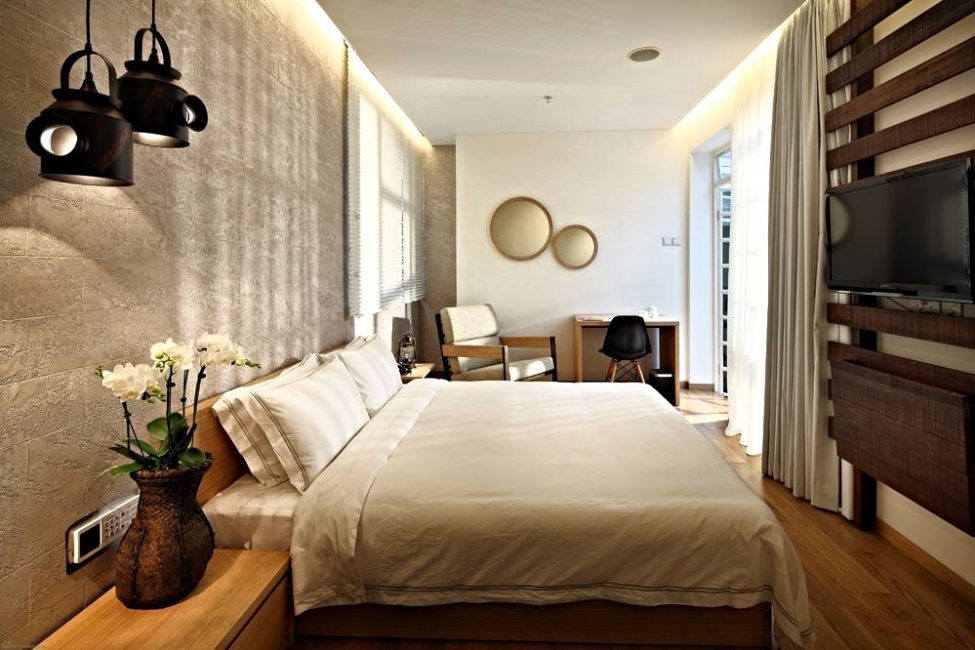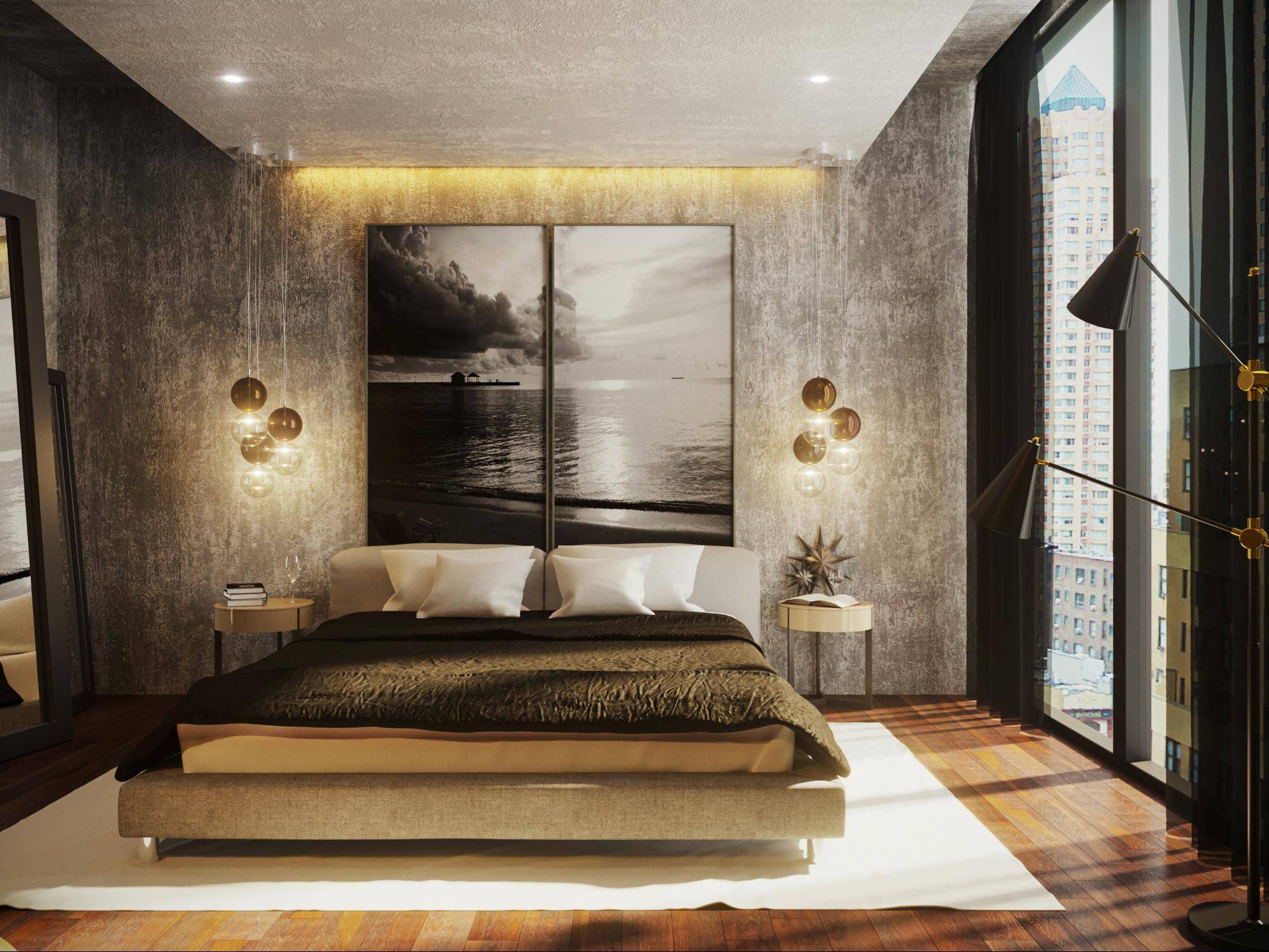 - Акцентная зона в спальне – решение распространенное и довольно-таки модное. Здесь совсем не обязательно использовать одинаковую фактуру. Для акцента выбирается стена у изголовья кровати. Так помещение кардинально видоизменяется.