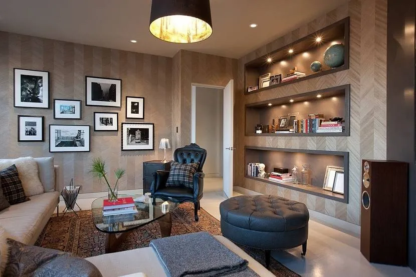 - Количество углублений. Если ниш много, они будут тяжеловато выглядеть в небольшой гостиной, да и гармонично все должно смотреться.