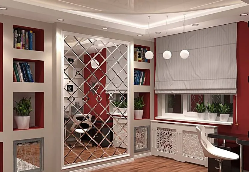 Если внутреннюю поверхность ниши отделать зеркалом, то помещение станет визуально просторнее, так как создастся эффект углубления. Это вариант для дизайна маленькой комнаты.