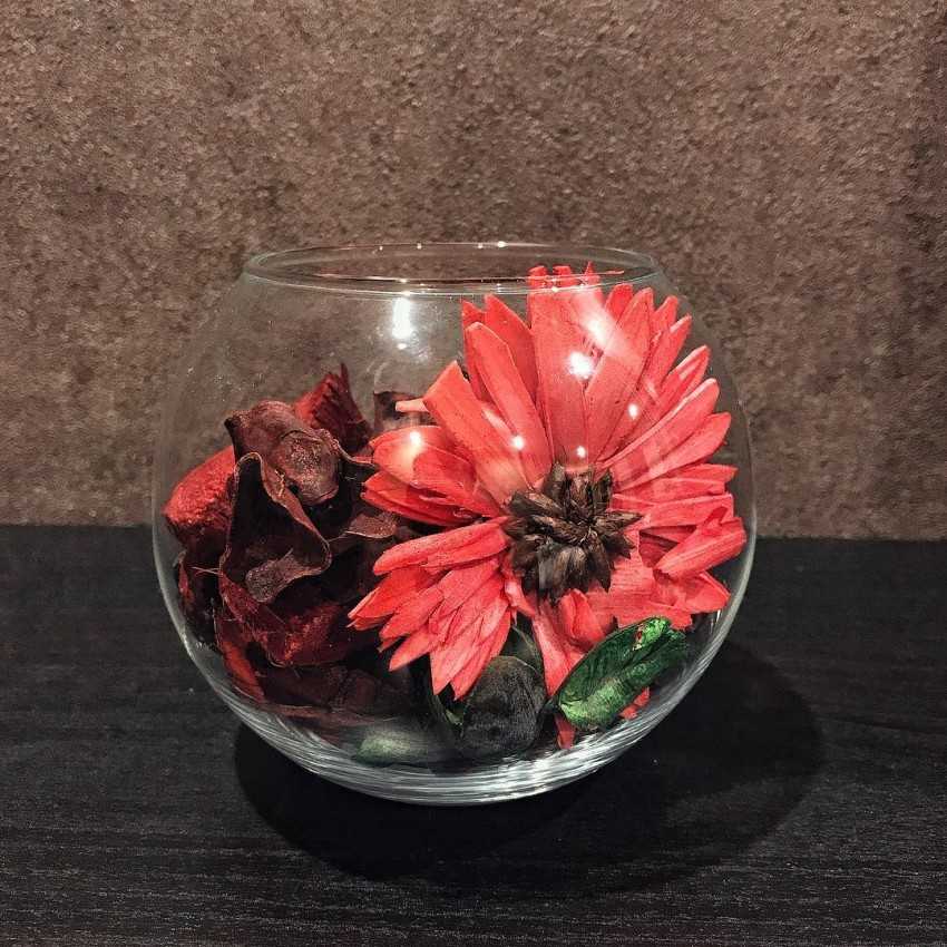 Емкость в форме шара подойдет для цветов со средними и короткими стеблями. Настоящей изюминкой интерьера она станет, если ее заполнить цветами с крупными бутонами: тюльпанами, герберами, пионами или розами. Хитрость заключается в том, чтобы для устойчивости стеблей обрезать их по высоте вазы, а затем немного распушить цветы для создания эффектной куполообразной композиции.