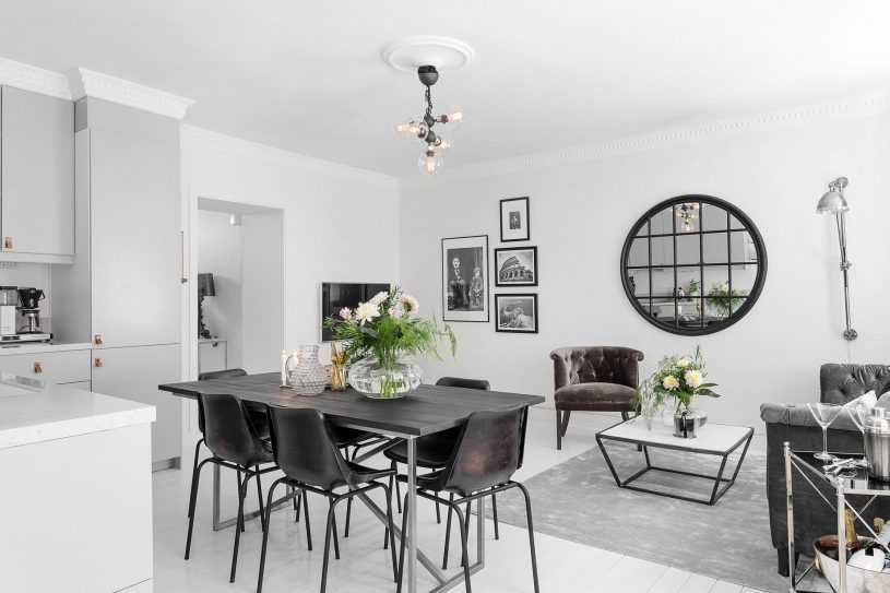 Барный стол – это универсальная конструкция, представляющая собой небольшую стойку для двух (максимально, трех) человек. Она достаточно мобильна, что позволяет перемещать её по кухонной и столовой зоне при необходимости (например, при смене интерьера).