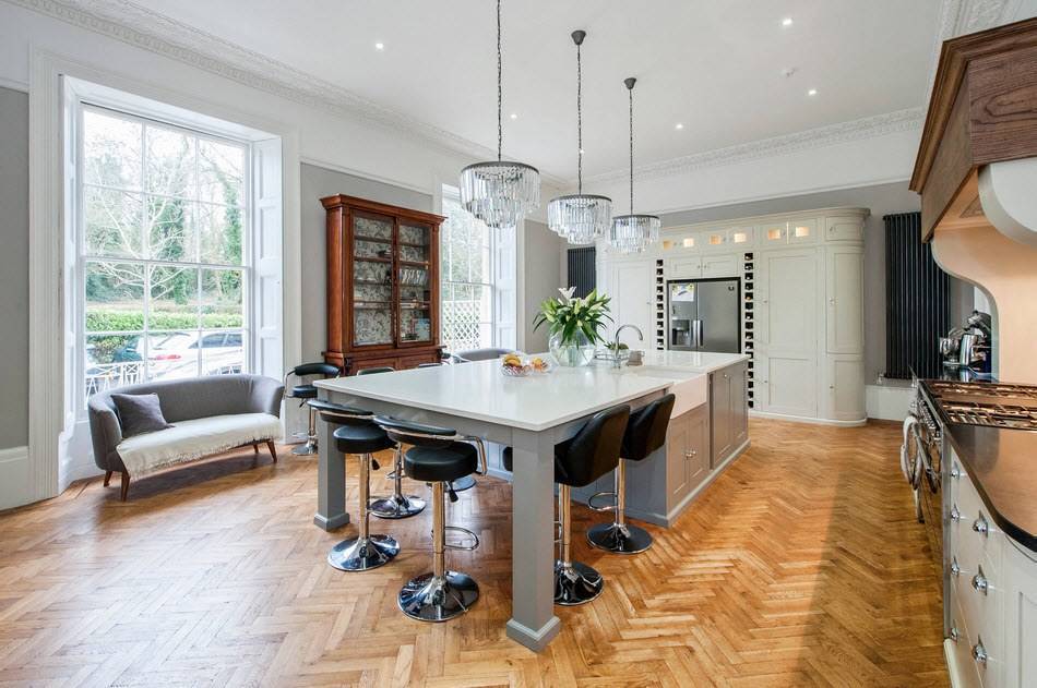 Данные конструкции в зависимости от габаритов могут удобно расположиться, как в небольшой кухне, так и стать центральным элементом в просторной кухне-гостиной, выполняя роль разделителя пространства.