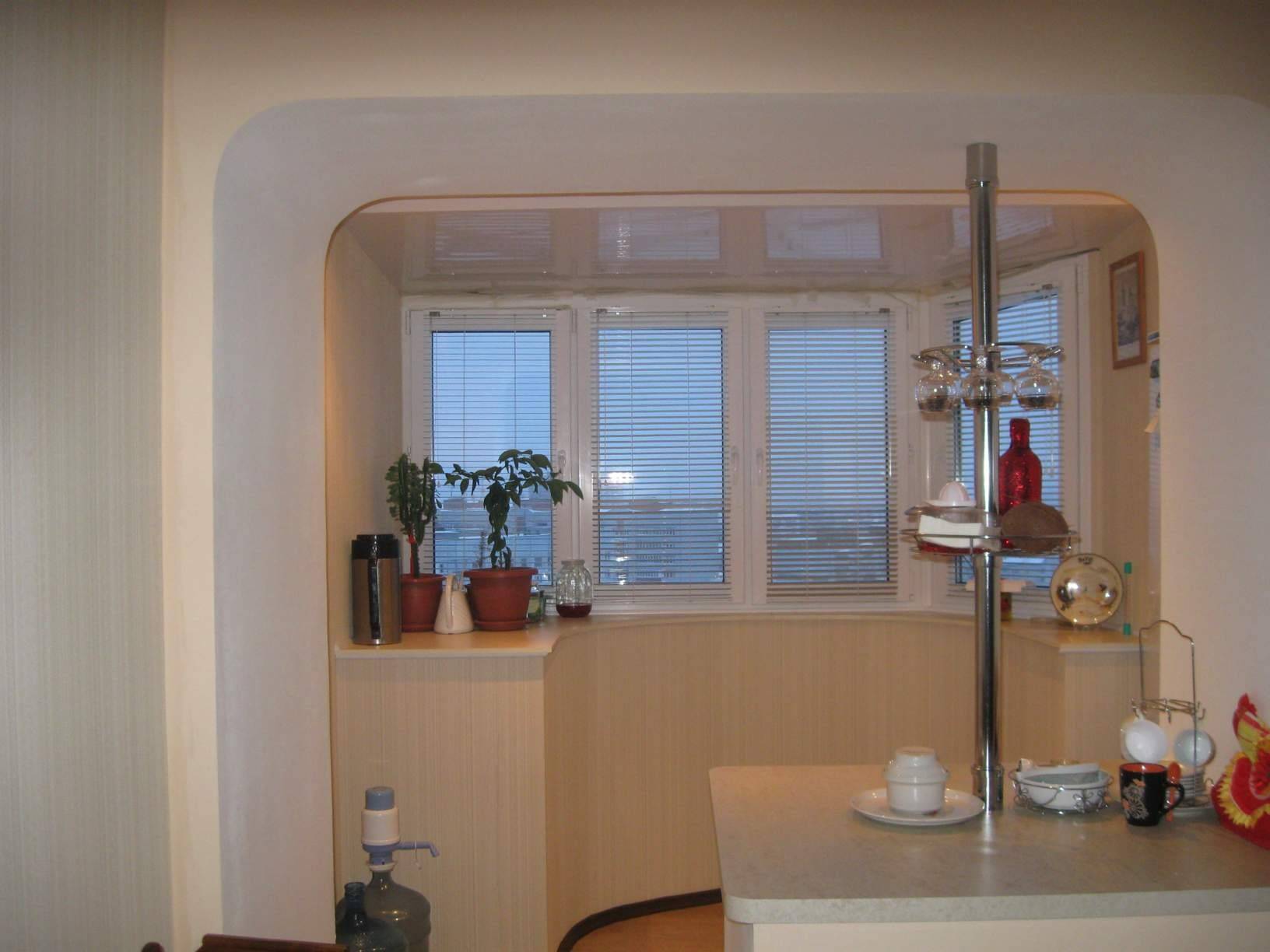 Стоит учесть и тот факт, что состыковка кухни и балкона не всегда гладкая и идеальная. Могут быть различные выступы, которые можно скрыть при помощи декоративных элементов при обустройстве дизайна интерьера. Например, карниз, который будет выделяться, можно сделать барной стойкой или вовсе рабочим столиком.