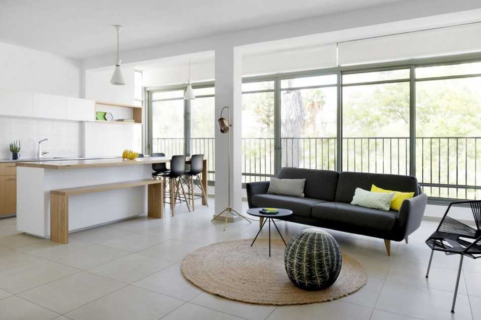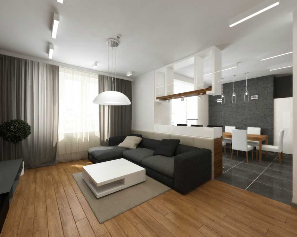 - Расширение пространства за счет объединения нескольких комнат. Например, кухни и гостиной, объединение комнаты с балконом.