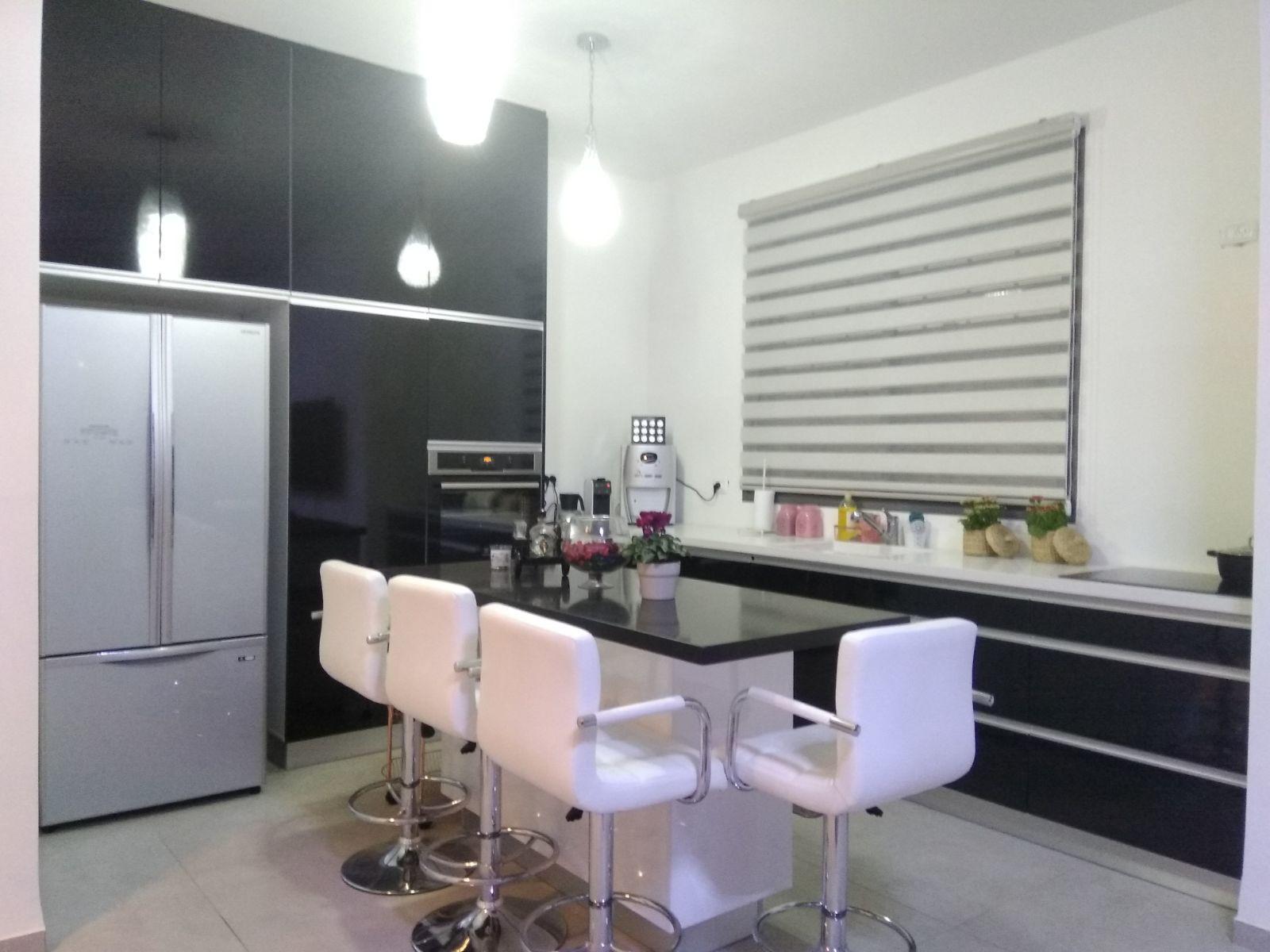А вот фото белой кухни в стиле хай-тек с черной техникой и сантехникой.