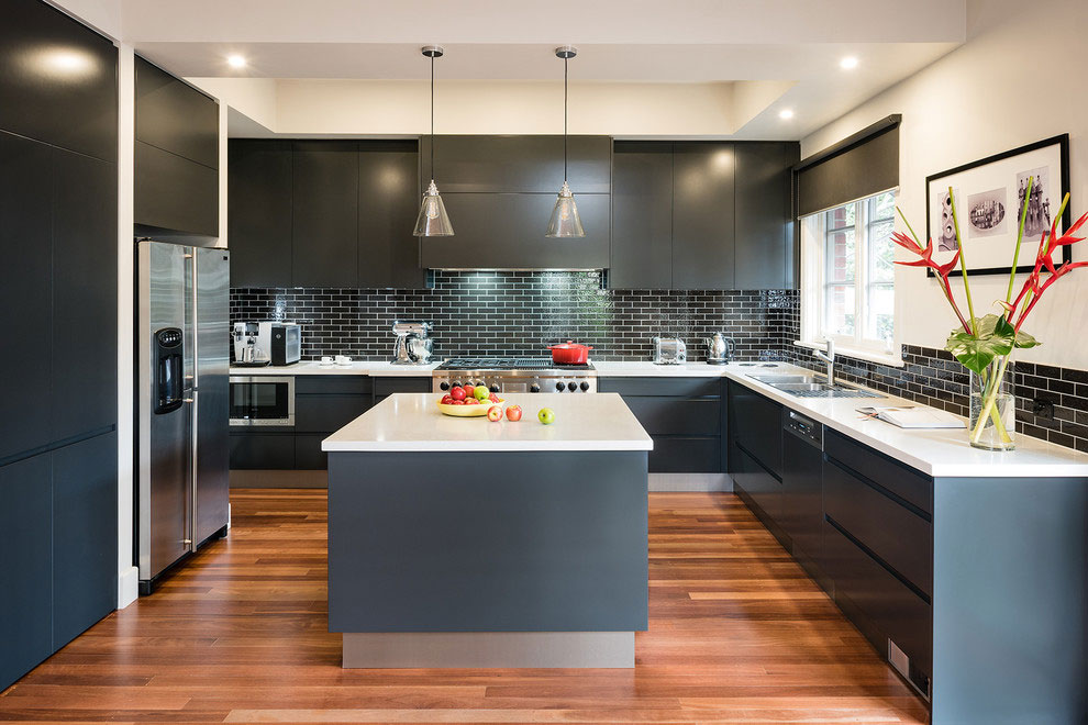 В кухне нужно разместить большое количество оборудования и при этом сохранить максимум пространства. Рекомендуется использовать встроенную технику.