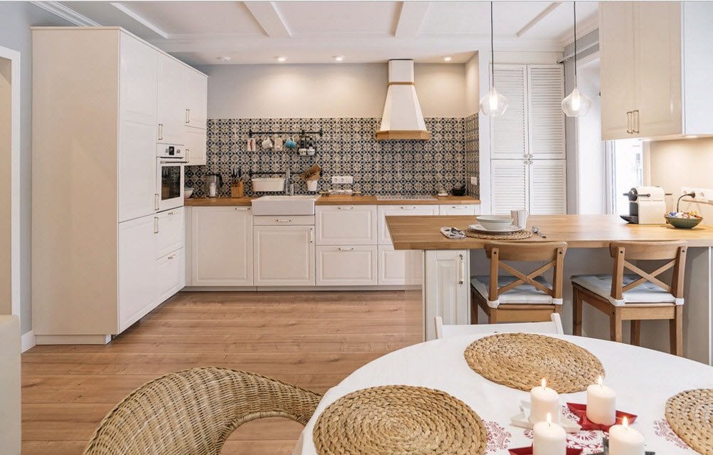 При отделке скандинавской кухни рекомендуется использовать натуральные материалы