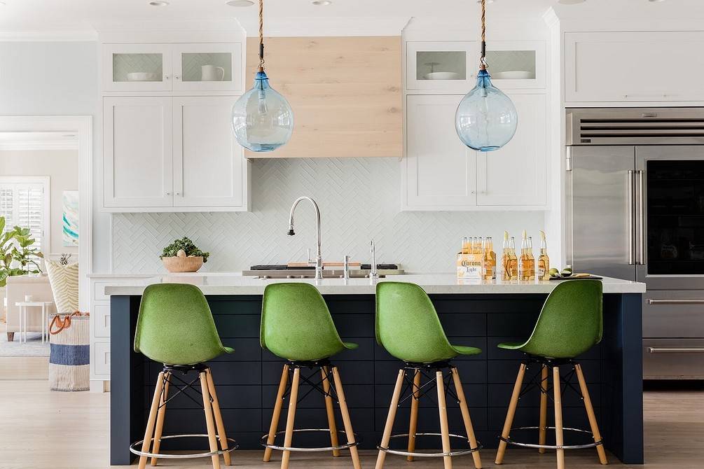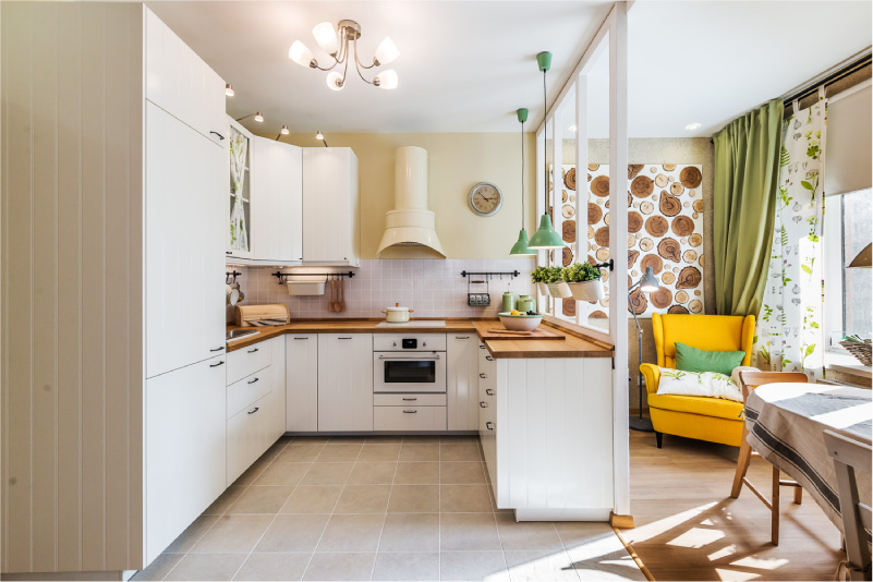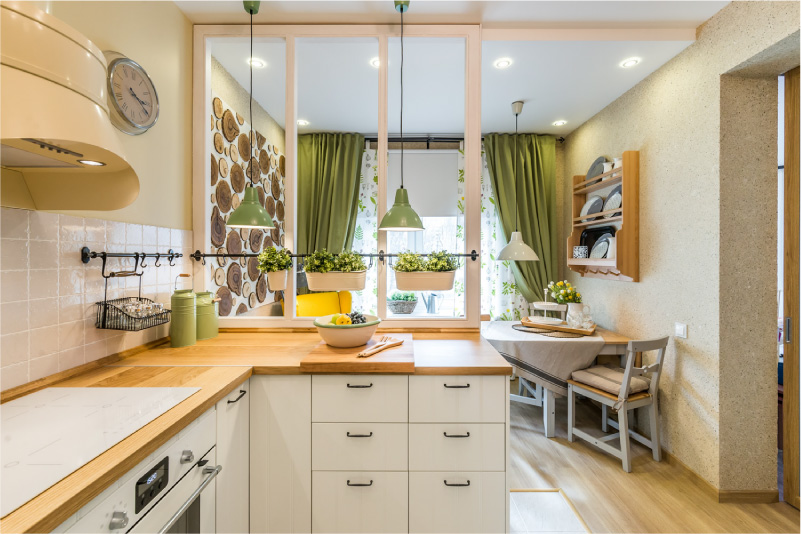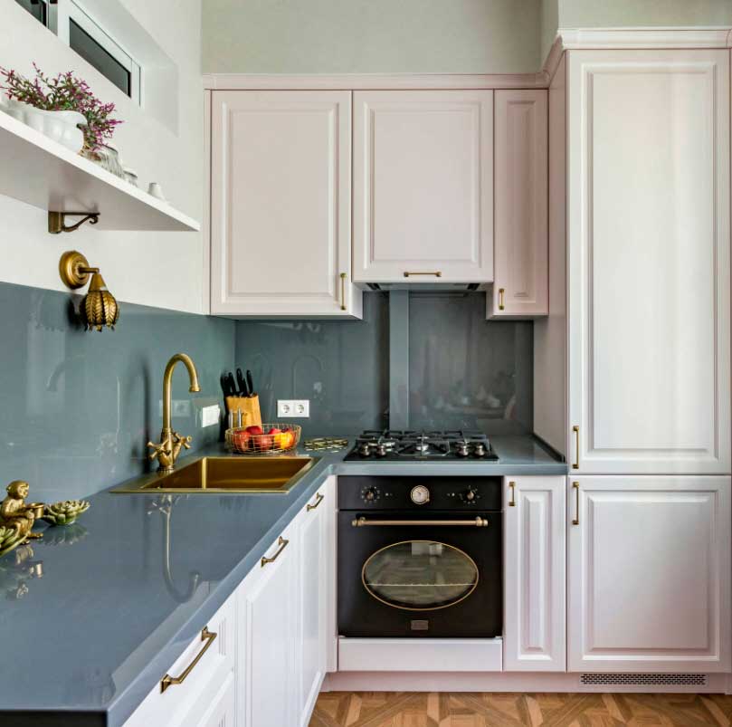 Чтобы добавить цвета – обрати внимание на сочный красный, солнечный желтый, спокойный зеленый или прохладный синий. В маленькой кухне хороши линейные или угловые гарнитуры, а в большой можешь поэкспериментировать с островной планировкой