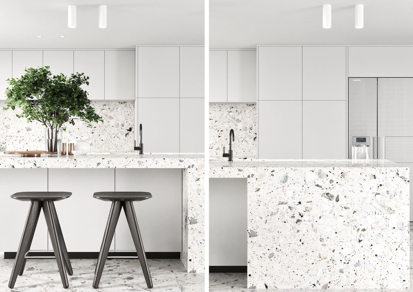 Декоративное панно из слэбов в дизайне стильной кухни-гостиной