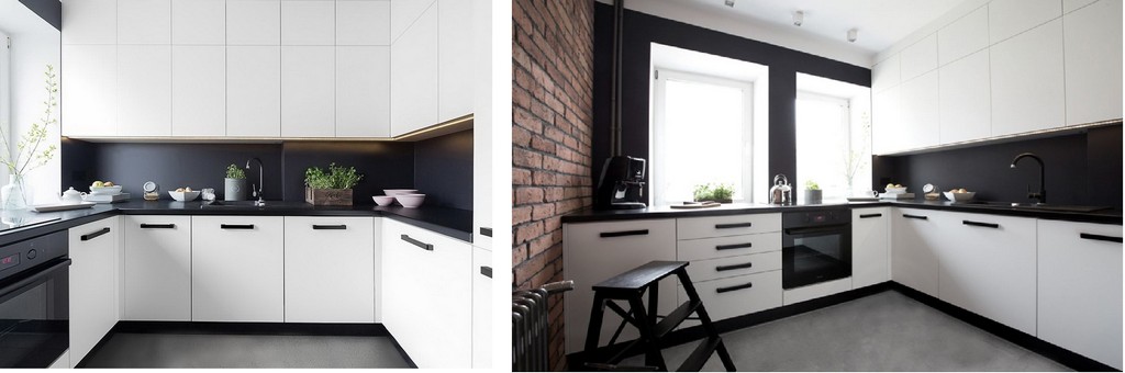 Цветной фартук разбавил темно-белый интерьер