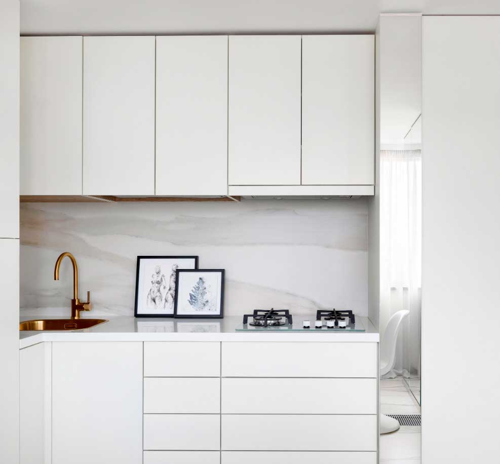 Белоснежные глянцевые поверхности – абсолютная чистота и простор