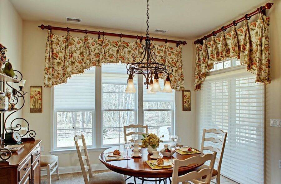 - Стоит отказаться от пышных занавесок, если неподалеку расположена плита.
