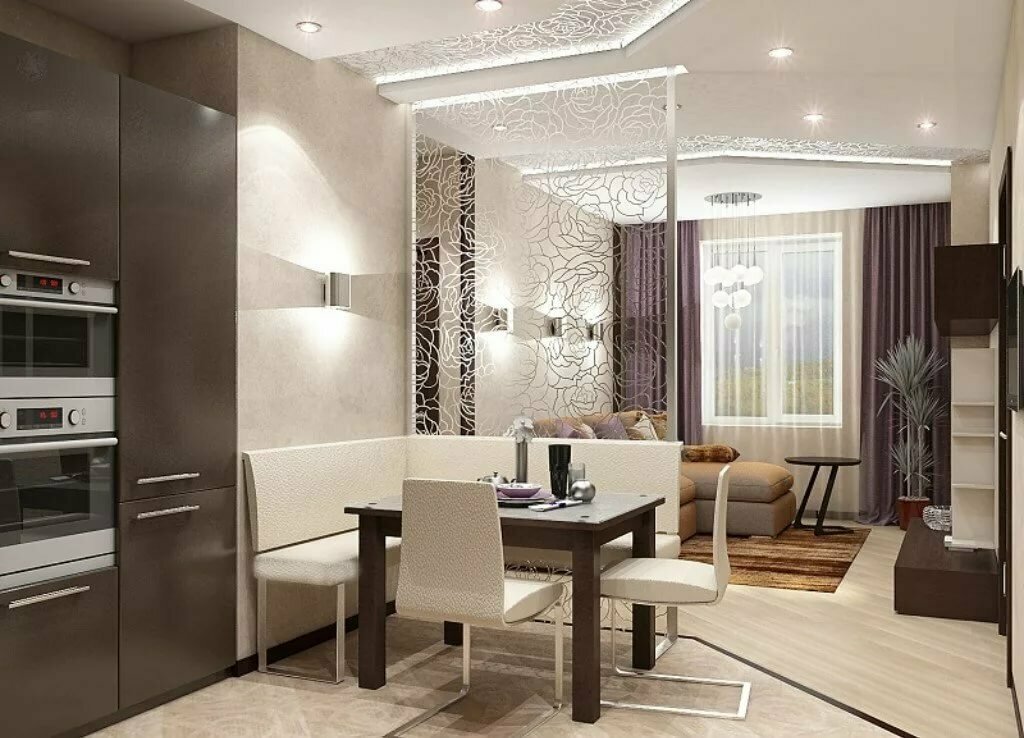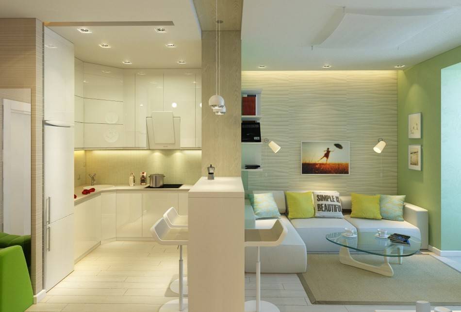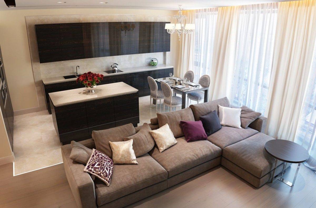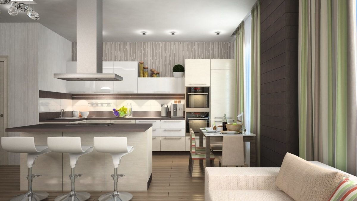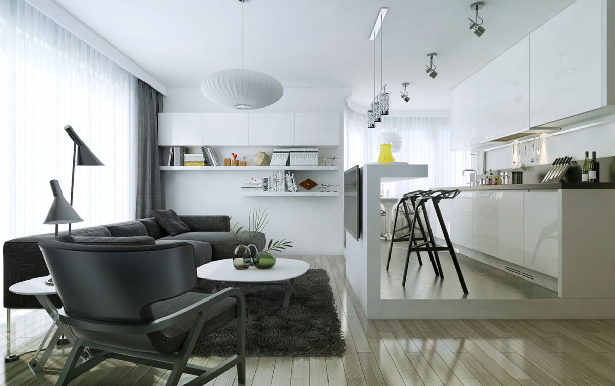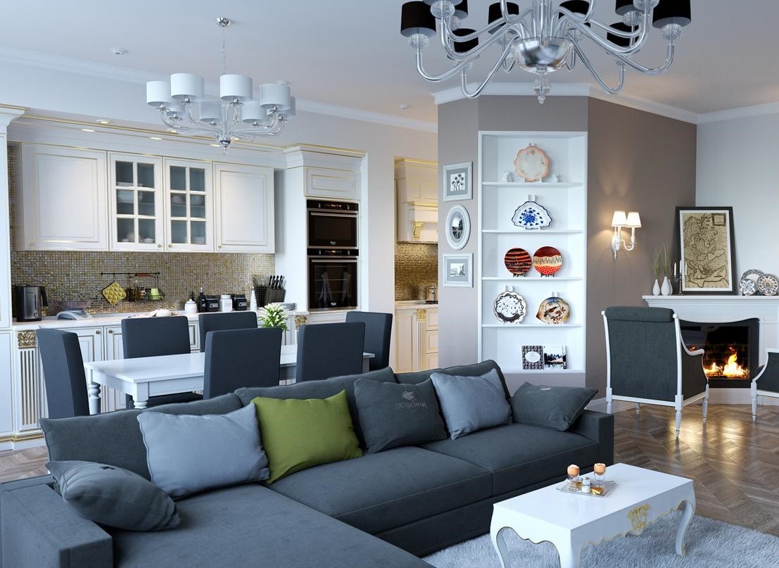 Способов зонирования и вариаций расположения кухни и гостиной существует несколько. Особенности габаритов пространства и архитектуры квартиры диктуют правильное решение.
