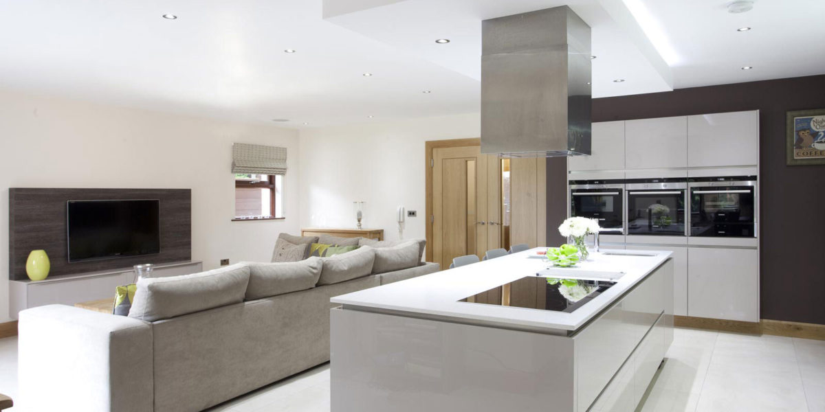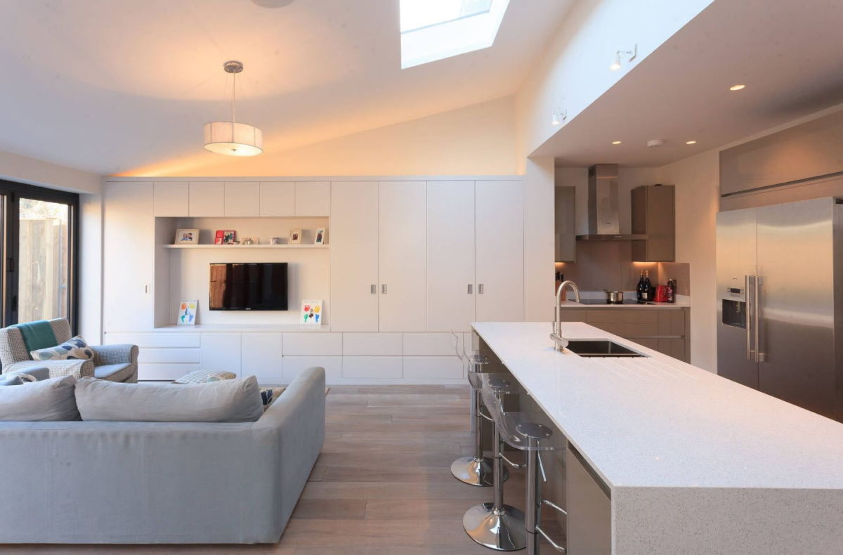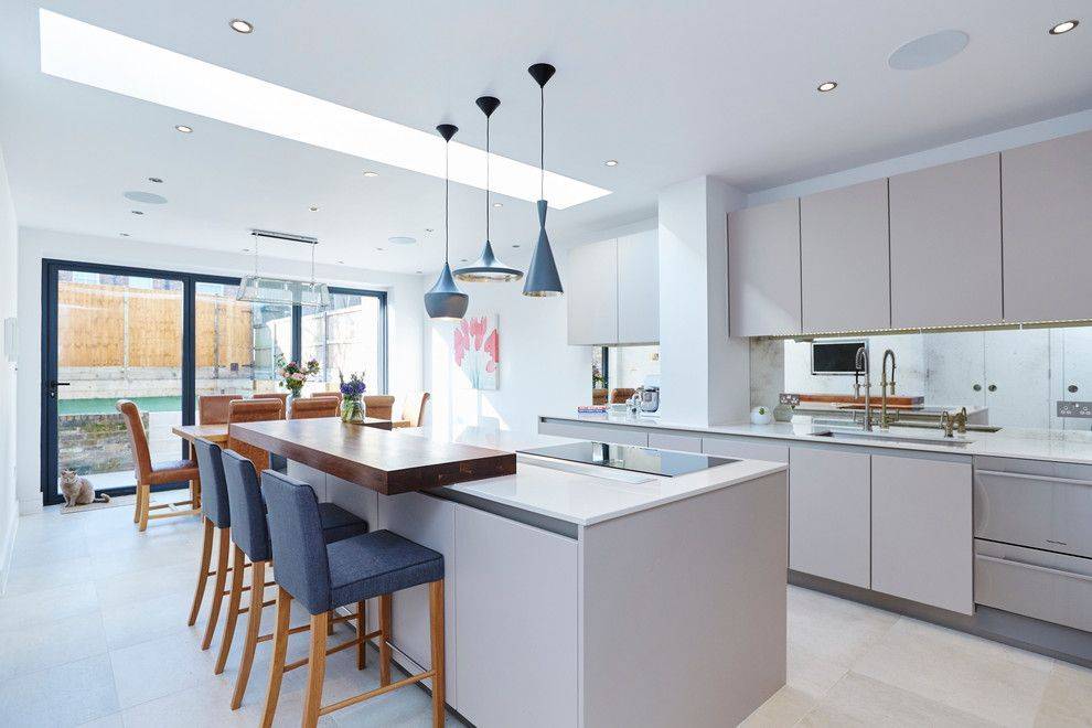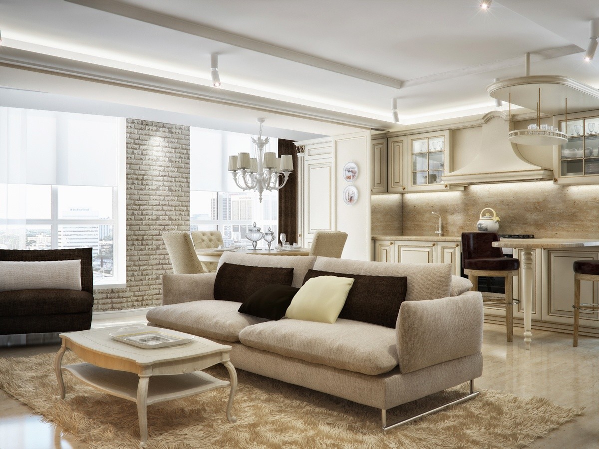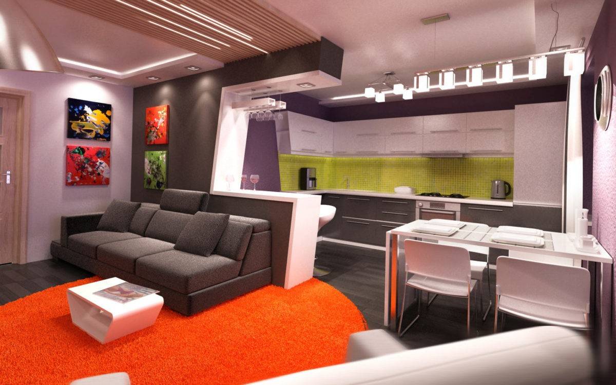 Дизайн кухни, совмещённой с залом, предполагает три основные точки подсветки: