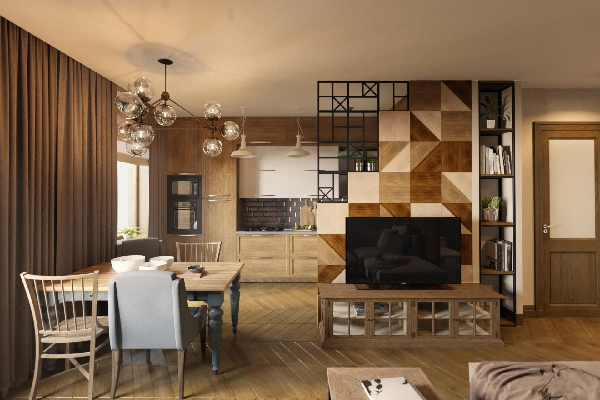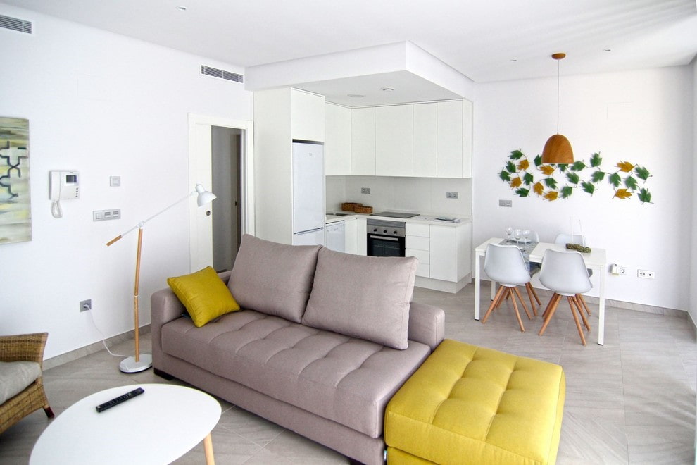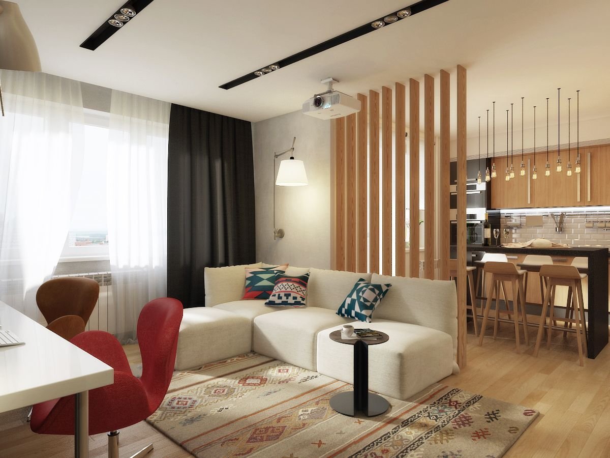 Если правильно распределить все функциональные точки, грамотно составить дизайн-проект с верным расположением столовой, рабочей зоны и гостиной, то вышеупомянутые минусы можно свести к минимуму.