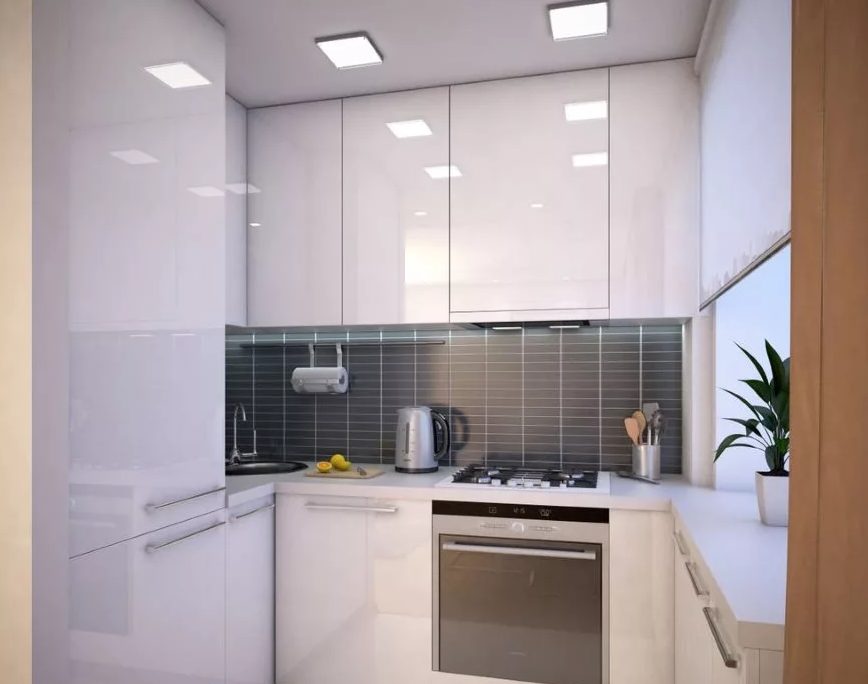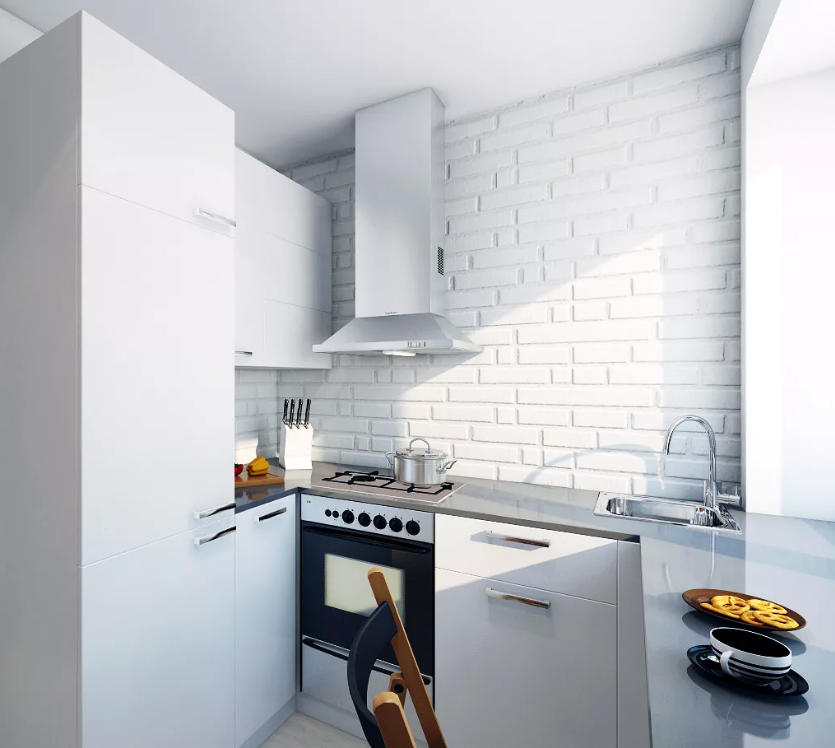 - Лучшим выбором для небольшой кухни станет встраиваемая техника и мебель.