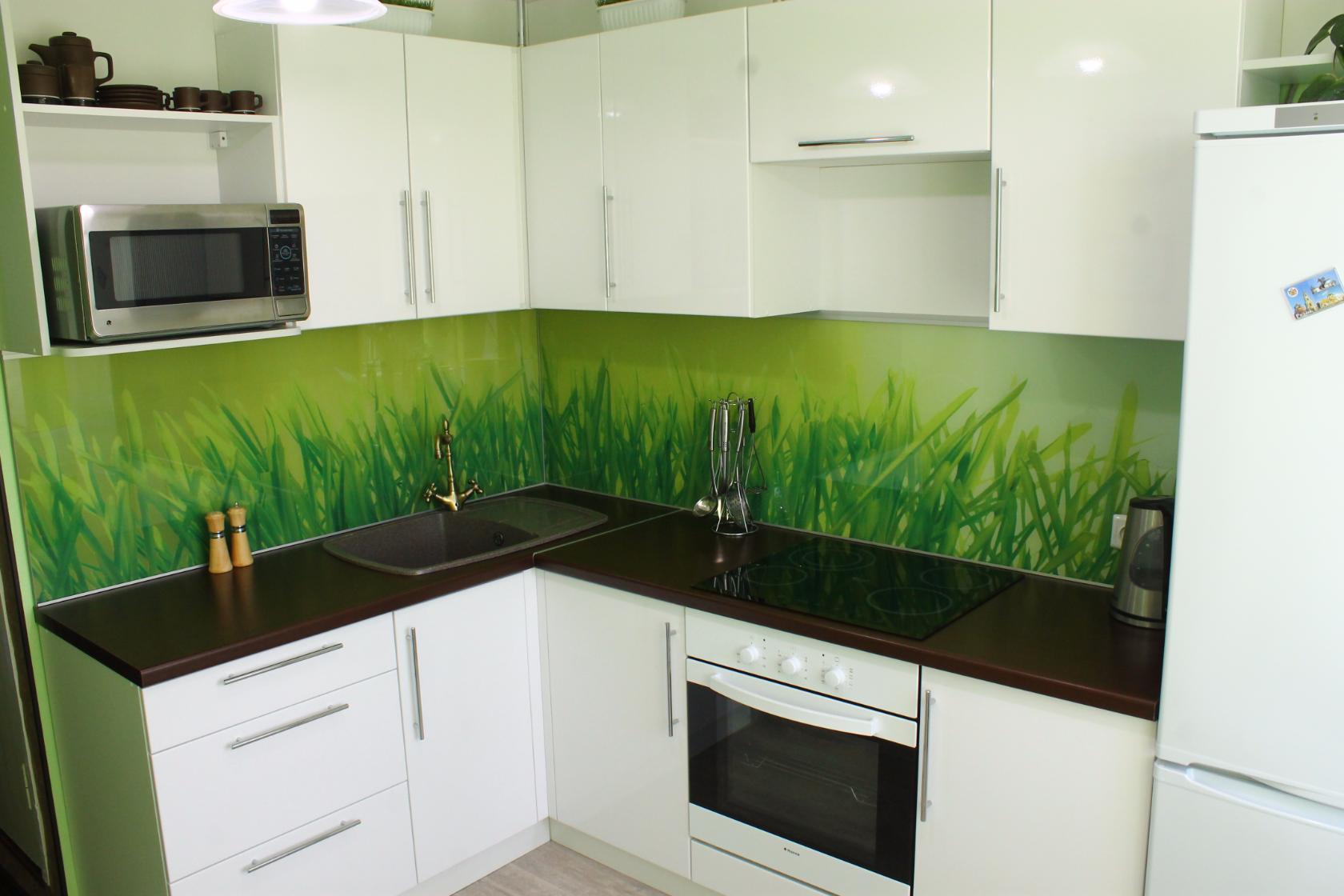 Для помещений поменьше выбирают Г-образный гарнитур, который устанавливают у двух смежных стен. При такой планировке используют встраиваемую бытовую технику, вращающиеся и выдвижные секции для хранения кухонной утвари