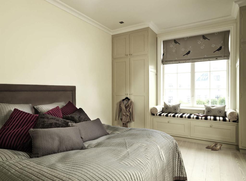 Системы хранения, комоды и шкафы обычно ставятся напротив или сбоку от спального места: между ними необходимо выдерживать удобное расстояние. Свободное пространство можно заполнить креслом, оттоманкой или туалетным столиком.