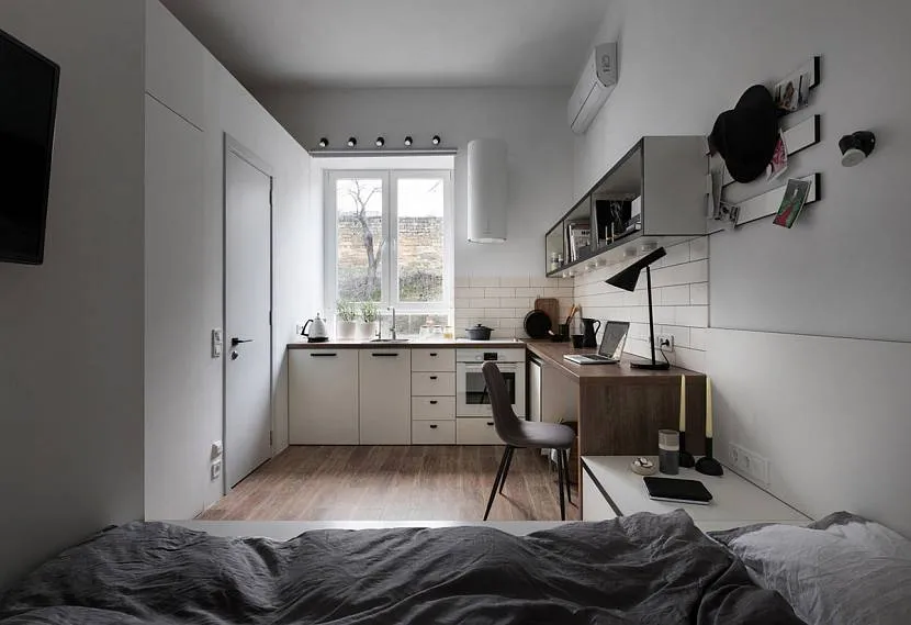 Кухня, спальня и рабочая зонаИсточник www.behance.net